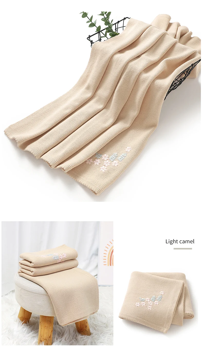 Baby Blanket 90*70CM Knitted Infant Stroller Swaddling Stroller Wrap Soft Newborn Girl Boy Bed Quilt Fashion Embroidered Florals